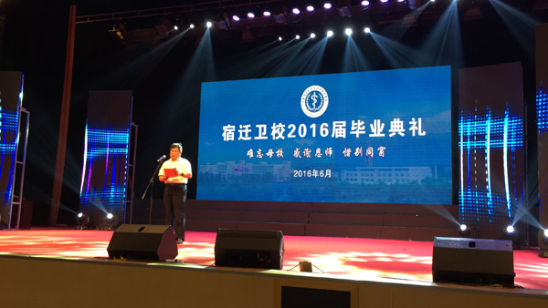 2016年6月30日上午10点,宿迁卫校在大礼堂隆重举行“难忘母校,感谢恩师,惜别同窗”2016届毕业典礼。校领导,毕业班所有班主任,14、15级学生代表们欢聚一堂,与圆满完成学业的2016届毕业生们分享成长的喜悦,憧憬美好的未来。