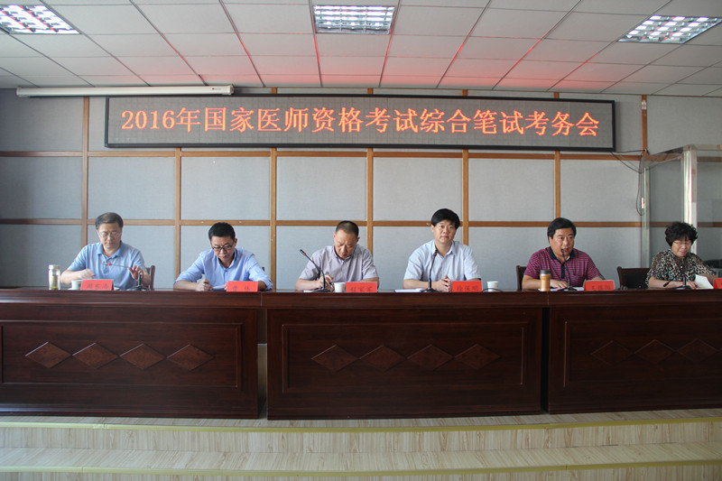 首先,市卫计委医政处周东浩处长传达了省卫计委关于国家医师资格考试的相关精神,就当前新形势下医师资格考试过程中容易出现的问题作出强调,要求医师资格考试相关主管部门要高度重视,认清形势,强化工作方案,抓好考务和监考的培训工作,狠抓工作纪律,确保2016年国家医师资格考试工作圆满完成。