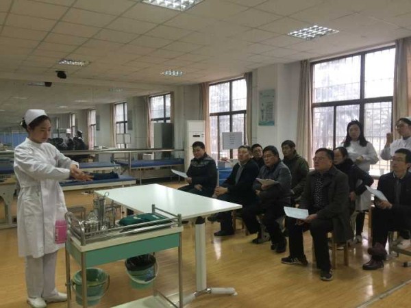 在观看四位选手的操作演示后,王辉阳校长进一步询问了大赛组织准备情况,要求继续认真梳理大赛各项准备工作,细化工作标准,确保安全有序参赛。张生玉副校长指出,态度决定一切,细节决定成败,要求指导教师按照省技能大赛项目规程,更有针对性、实效性地加强选手训练,希望参赛选手保持良好状态,刻苦训练技能,在比赛中力争好的成绩。张奎副校长强调学校将全力支持保障护理技能比赛的顺利进行,要放下包袱,全力以赴。