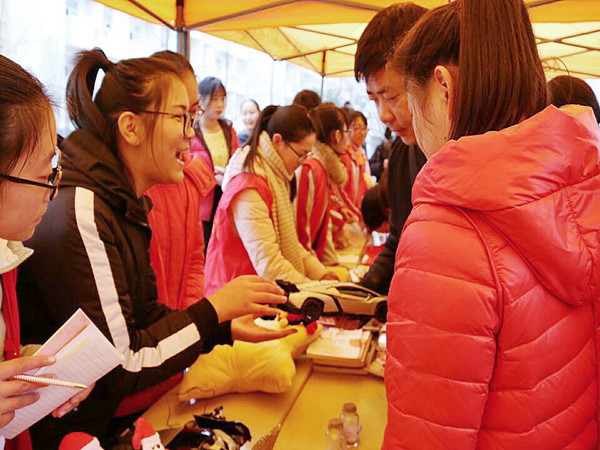 义卖现场热闹非凡,吆喝声、叫卖声和讨价还价声,以及各种形式的宣传推销不绝于耳。每一个摊位前都摆满了学生们带来的各种各样的物品,许多教师也都带来了自己的义卖物品,争取为义卖出一份力量。据悉,本次爱心义卖活动由校团委仁爱志愿者协会主办,义卖所得的款项将用于看望湖滨新区敬老院老人们,为其采购保暖用品。