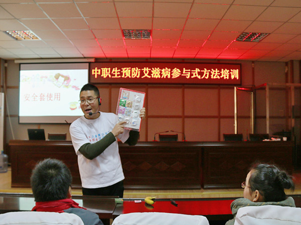 为了使更多的在校学生认识到预防艾滋病的重要性,2017年2月23日,已经做了9年防“艾”公益宣传员的江苏省沭阳县中医院妇产科医生、联合国青少年“爱心大使”周瑞在我校四楼会议室举行了“中职生预防艾滋病参与式方法培训”。本次会议由校团委书记荣峰主持,共有206名学生志愿者参与讲座。