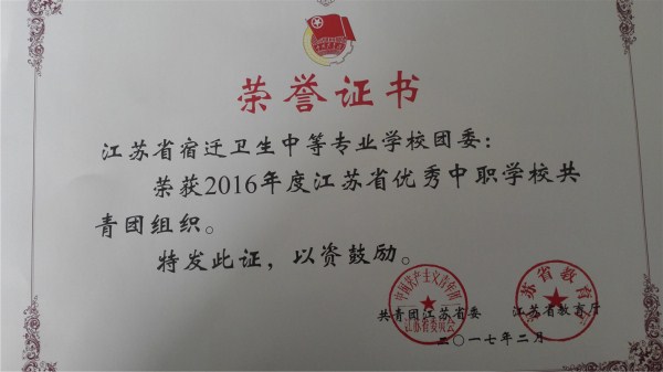 近日获悉,在江苏省中学中职共青团工作考核评比中,宿迁卫校团委以扎实的工作基础,荣获“2016年度江苏省优秀中职学校共青团组织”荣誉称号。