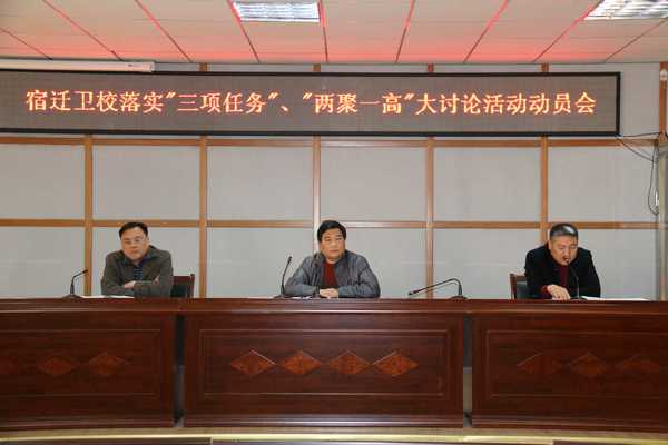 3月16日下午,宿迁卫校召开落实“三项任务”、推进“两聚一高”大讨论活动动员会,全体教职工参加会议。