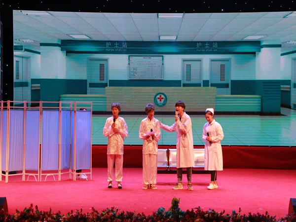 随后,来自学校各大社团的同学们为现场观众献上一场饕餮文化大餐。动感十足的舞蹈《阿育王》拉开序幕,《舞蹈串烧》以活泼的舞步,动感的节奏,赢得观众阵阵掌声;小品《看病》把生活中医院的情景形象地展现在舞台上;护士专业学生本色表演《护理礼仪展》,完美地展现了护士工作人员的良好专业形象……舞蹈、小品、轮滑、吉他弹唱等众多节目形式,整个汇演现场,歌声、掌声、欢呼声融为一片。