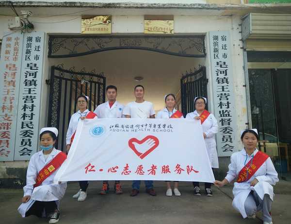 近日,宿迁卫校仁・心志愿者服务队“一五一五”公益计划来到了宿迁市湖滨新区皂河镇王营村,为那里五保老人们送医送药,帮助老人进行了血压、血糖的测量,并进行了健康宣教,受到了在场百姓的围观与欢迎。