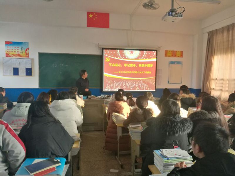 王校长向同学们详细讲解了十九大的主要内容和《中国共产党章程》,把十九大精神送进课堂,传递了夺取新时代中国特色社会主义伟大胜利的坚定信心,凝聚起同学们同心共筑中国梦的磅礴力量。