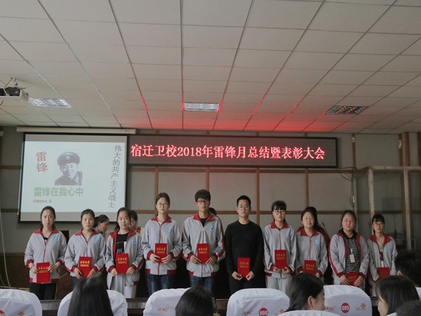 会议伊始,宋老师宣读了《关于表彰宿迁卫校2018年度“十佳志愿者”的决定》,授予黄海婷、孙怡等十位同学“十佳志愿者”荣誉称号。颁奖后,志愿者协会副会长候文雷同学作了本月活动汇报,讲述了自己雷锋月中的行动、感受和收获。之后鲍老师对活动进行了总结,她号召同学们要向身边的榜样学习,努力提升自身素质,为自己和学校争得荣誉,为国争光。最后,荣书记作了重要讲话,他指出,雷锋精神是我国宝贵的精神财富,是社会主义核心价值观的集中体现,我校自2013年开展“青春团递正能量,学习雷锋好榜样”主题活动已经走过了五年,五年来学雷锋活动真正成为我校共青团活动的品牌,涌现出一大批优秀的青年典型,培养了卫校青年学生的品格。本次总结表彰只是一个驿站,是更新更高阶段的起点,希望全校师生都能够投入到学雷锋活动中去,将学雷锋活动贯穿在我校校园文化、思想政治教育始终,深化校园精神文明建设,外塑形象,内强素质,用实际行动为学校发展贡献力量。