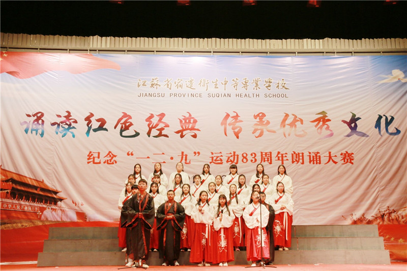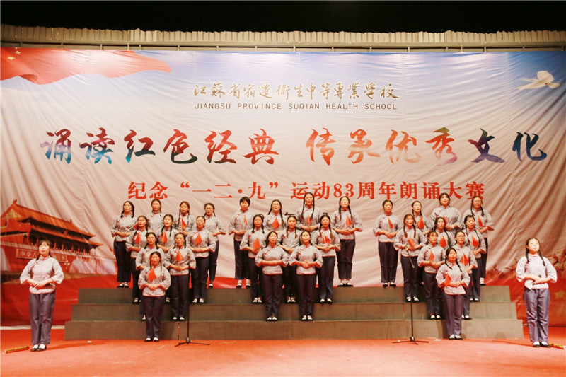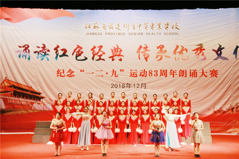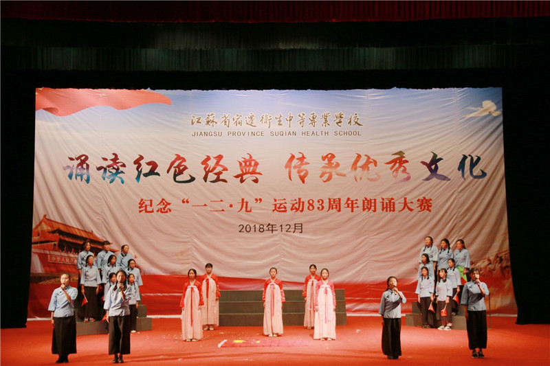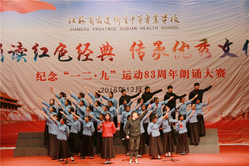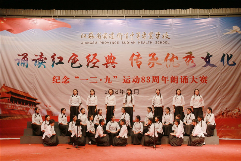 为继承和发扬爱国主义精神,纪念"一二・九"学生爱国运动,使学生树立为报效和振兴中华民族而努力学习的远大志向。让学生们在诵读过程中培养爱国情怀,接受中国传统美德潜移默化的影响和教育,提高学生文化和道德素质,增强民族自信心和自豪感,宿迁卫校于12月7日下午,举行了纪念"一二・九"运动红色经典朗诵大赛。