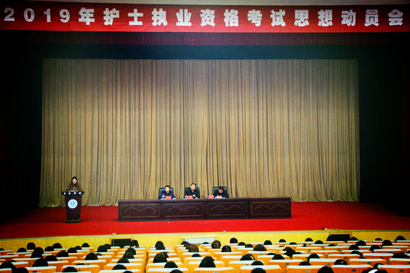 为进一步做好2019年护士执业资格考试备考工作,帮助学生树立坚韧顽强的学习信念,增强学生学习的积极性和主动性,确保顺利通过2019年执护考试,3月5日,我校召开2019年护士执业资格考试思想动员会,学工处、教务处负责同志、2015级班主任和400余名学生参加了此次会议,学校分管领导张生玉主持并讲话。
