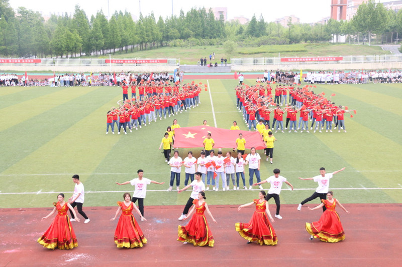 开幕式由张奎副校长主持。王辉阳校长发表热情洋溢地致辞,勉励运动健儿们在比赛中赛出风格,赛出水平,争取运动成绩和精神文明的双丰收。运动员和裁判代表宣誓完毕,卫健委的张主任宣布运动会开幕,刹那间,操场上彩旗飞舞、掌声雷动,嘹亮的欢呼声响彻校园天空。在文体表演环节,节奏欢快,服装靓丽的啦啦操和饱含深情的合唱《我和我的祖国》轮番登场,赢得了在场师生的阵阵喝彩。