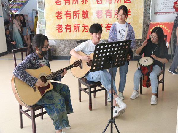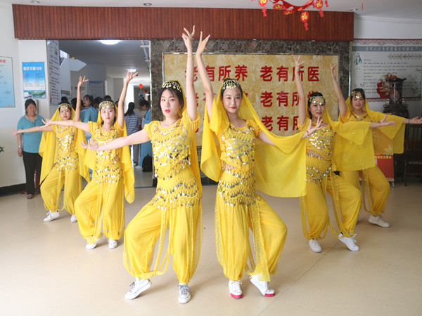 演出在端午节祝福语中拉开序幕,在一个小时的倾情演出中,相继演绎了婀娜多姿的舞蹈《千丝戏》、个性小合唱《小苹果》《粉红色的回忆》、吉他弹唱《滴答》、歌伴书法《墨韵九张机》、乐器组合弹唱《蓝莲花》等10个节目,精彩的节目让现场气氛持续高涨,掌声不断,受到了长者们的热烈欢迎。演出的最后,以绚丽闪耀的印度舞《阿育王》结束了本次慰问之行,老人们满怀激情的鼓掌,纷纷竖起大拇指为演员们点赞。