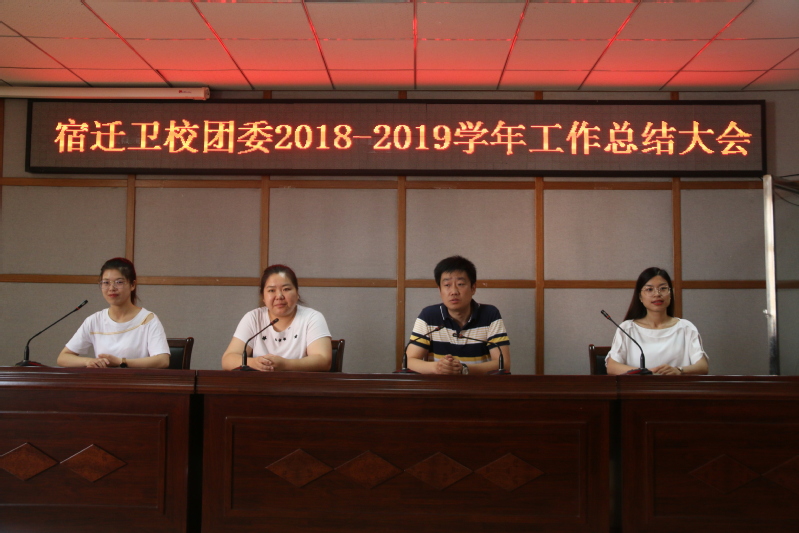 6月18日下午宿迁卫校团委在四楼会议室召开学年工作总结大会。学校团委副书记荣峰、委员王星、宋彦羿、周博及2017级、2018级团总支和社团联合会主要成员200余人参会,会议由社联副主席朱相臣主持。