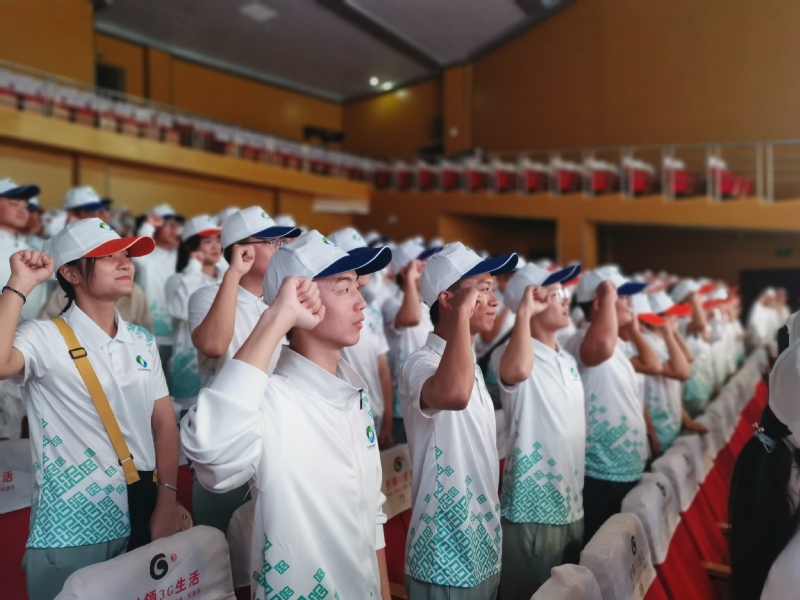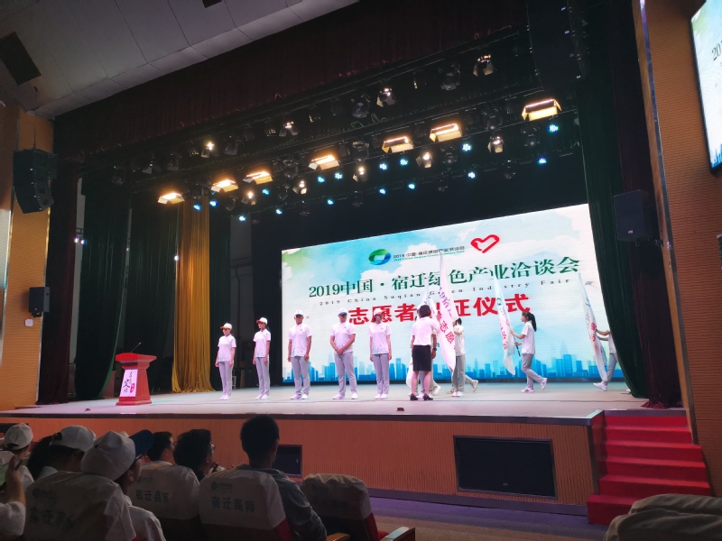 9月25日晚上6点,绿洽会志愿者出征仪式在宿迁高等师范学校学生礼堂举行。团市委书记耿晓云同志出席会议并为六支队伍授旗。宿迁卫校20名志愿者参与了仪式。