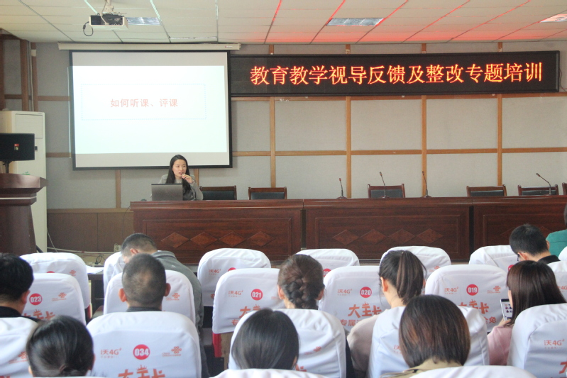 会上,教务处张丽艳副处长首先就视导组的视导情况作了报告。接着,郑曼曼老师结合此次视导情况,作了题为《如何听课和评课》的专题培训,郑老师分别从备课、上课、说课、听课、评课五个角度,结合自己的教学实践,融入自己的体会和思考,深入浅出的向大家作了报告,赢得了大家的热烈掌声。