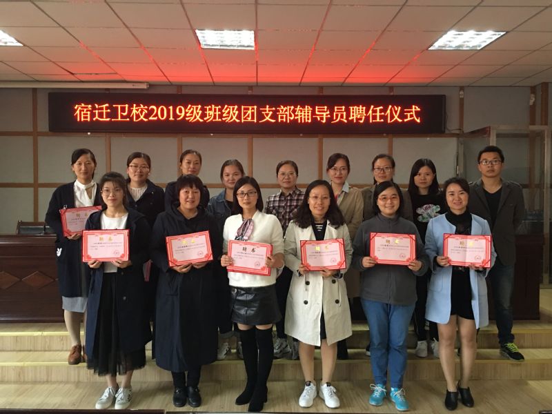 10月21日下午,宿迁卫校2019级班主任兼任班级团支部辅导员聘任仪式在宿迁卫校四楼会议室隆重举行。校团委副书记荣峰、委员王星和全校19名受聘团支部辅导员(班主任)参加了此次活动。