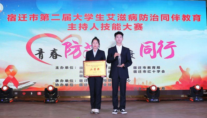 为进一步增强青年学生艾滋病防治意识和技能,提高同伴教育影响力,强化同伴教育队伍建设,10月26日,宿迁市第二届大学生防艾同伴教育主持人大赛在宿迁市泽达职业技术学院举办,宿迁卫校学生主持人团队荣获二等奖。