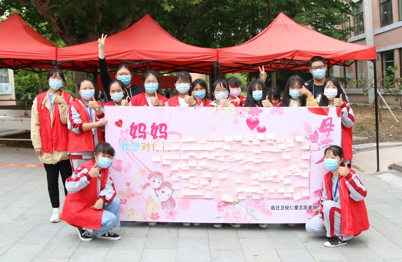 母亲节来临之际,为丰富校园文化,5月9日中午,宿迁卫校仁爱志愿者协会在南餐厅门口举办“浓情五月,感恩母爱”之母亲节特别活动,通过便利贴寄语鼓励宿卫学子感恩母亲,为默默奉献的她们送去一份最真挚的祝福。