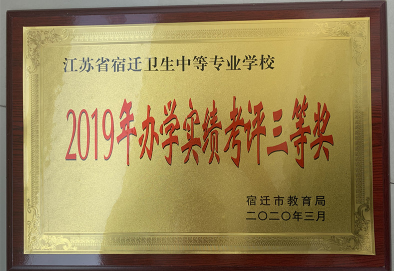近日,宿迁卫校喜获2019年市教育局办学实绩考评三等奖。