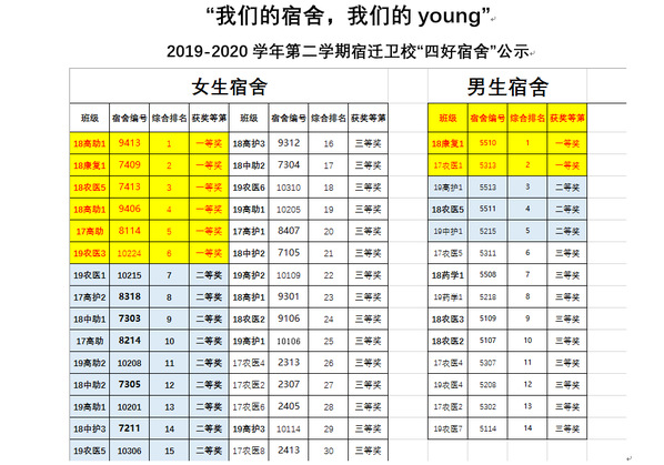 为进一步推动校园文化建设,培养学生良好的生活习惯,营造温馨和谐的宿舍文化氛围和良好的生活环境,6月中下旬,宿迁卫校举办了宿舍文化评比系列活动,此次活动的主题是“我们的宿舍,我们的young”。