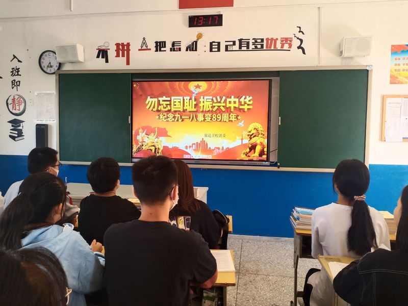为纪念“九·一八”事变89周年,进一步弘扬爱国主义精神,激发爱国热情,宿迁卫校团委利用班会课开展了纪念“九·一八”事变主题教育活动。