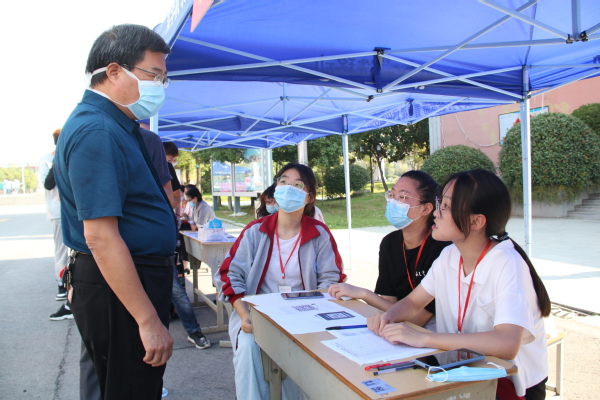 学校领导先后来到各班级的迎新接待点,详细了解新生报到情况,询问学生住宿情况。校领导对各班级有条不紊开展迎新工作表示肯定,对积极参与迎新的师生们表示慰问和感谢。王辉阳校长强调,要为新生提供人性化、亲情化的接待服务,把迎新工作做细做实,让学生和家长切切实实感受到来自学校的温暖和关怀。潘靖副校长要求,大家要继续抓好细节,真诚服务,做好各方面的迎新服务工作,让学生放心,让家长放心。