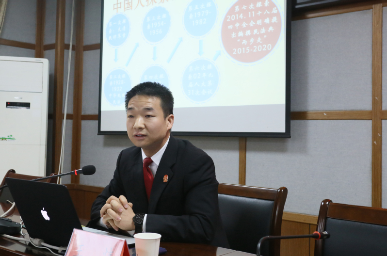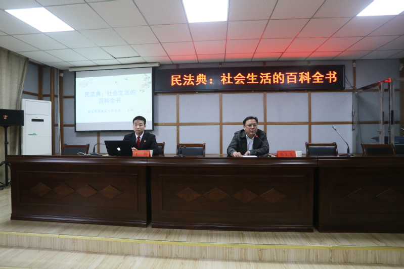 为认真做好民法典学习宣传工作,普及民事法律知识,提升全体教职工法律素养,构建和谐平安的校园环境。11月5日下午,学校在四楼会议室举办《民法典:社会生活中的百科全书》专题讲座。讲座由宿迁市宿城区人民法院民事审判第一庭副庭长、一级法官王炜主讲,全体教师出席,党委书记、副校长张生玉主持。