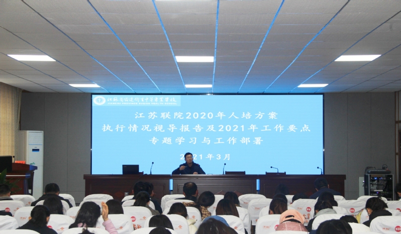 为认真落实江苏联院2020年人才培养方案执行情况视导整改工作的要求和2021年工作要点的部署,3月18日下午,宿迁卫校召开专题会议,校党委书记、副校长张生玉出席会议并讲话,副校长王立、潘靖及全体教师参加会议,会议由教务处处长丁炳干主持。