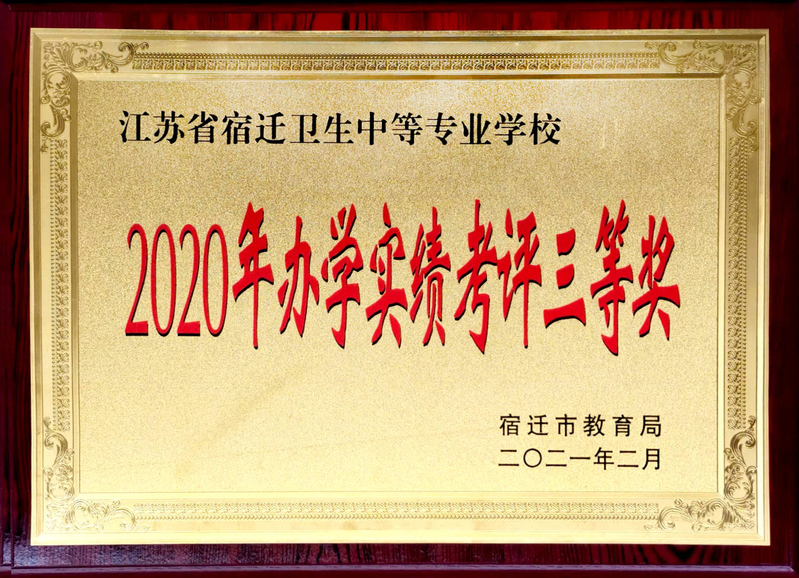 近日,宿迁市教育局公布了2020年全市职业教育与社会先进单位和先进个人,宿迁卫校喜获办学实绩考评三等奖。