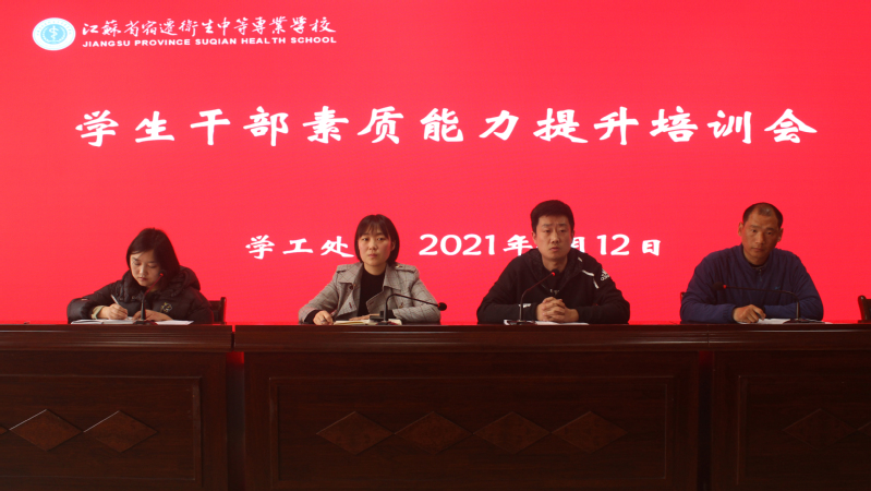 为提高学生干部的整体素质,培养学生干部能力,4月12日下午,宿迁卫校举行“学生干部素质能力提升”培训会。副校长潘靖出席培训会,学工处处长荣峰,副处长杨振宇,负责学生会工作的老师及全体学生干部参加了此次会议。