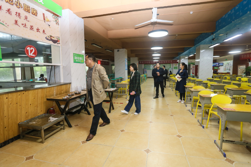 检查组一行首先对教职工办公区域进行了检查,总体上地面干净整洁、物品摆放有序,卫生状况较好。随后,检查组一行来到学生食堂,张生玉仔细查看了烹饪区域、食品留样间、洗菜区域以及原材料仓库,认真听取了食堂负责人落实安全生产工作情况汇报,他强调,后勤处要切实履行监督管理职责,定期对食堂的安全生产进行全面检查和工作指导,了解食品原料采购、贮存、领用等各个环节情况,及时反馈检查结果,对存在的问题要督促食堂负责人及时整改到位,坚决杜绝发生食品安全事故。
