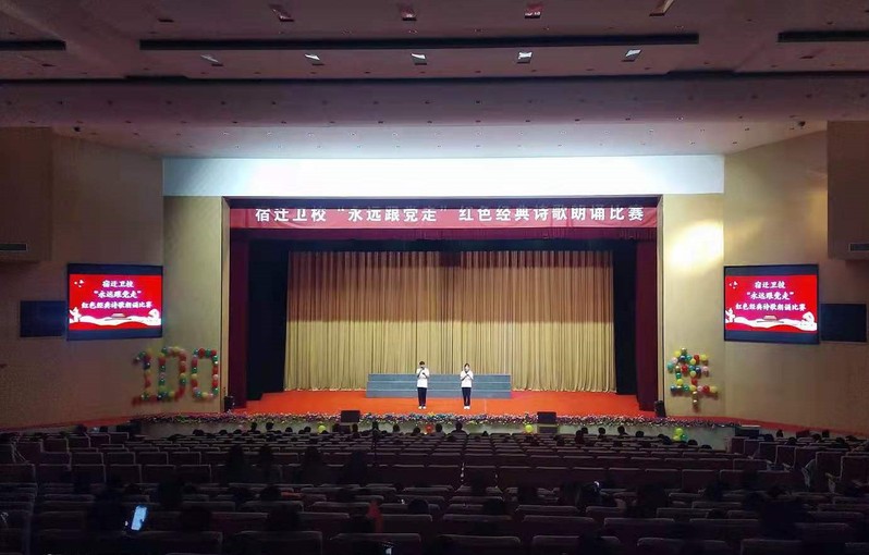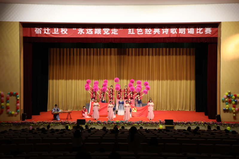 为庆祝建党100周年,弘扬爱国主义和民族精神,歌颂伟大中国共产党,引导广大师生追寻革命先辈光辉足迹,5月26日下午,宿迁卫校举办“永远跟党走”红色经典诗歌朗诵比赛,部分党支部书记及党员教师代表组成评审小组进行现场打分,20级全体同学共同观看了此次比赛。
