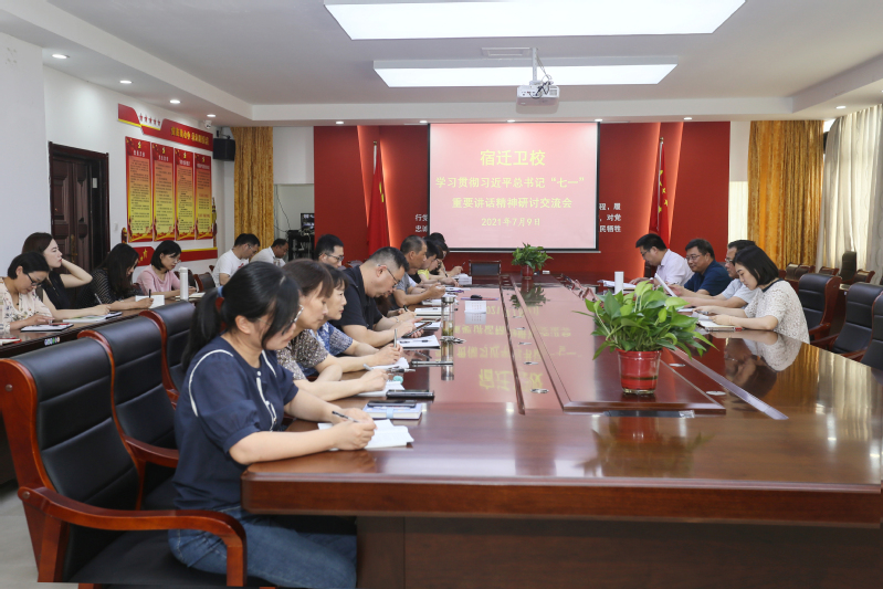 7月9日下午,宿迁卫校党委理论学习中心组在党员活动室召开习近平总书记“七一”重要讲话精神学习研讨会。校长王辉阳出席会议并讲话,会议由校党委书记、副校长张生玉主持,副校长王立、潘靖及全体中层干部参加会议。