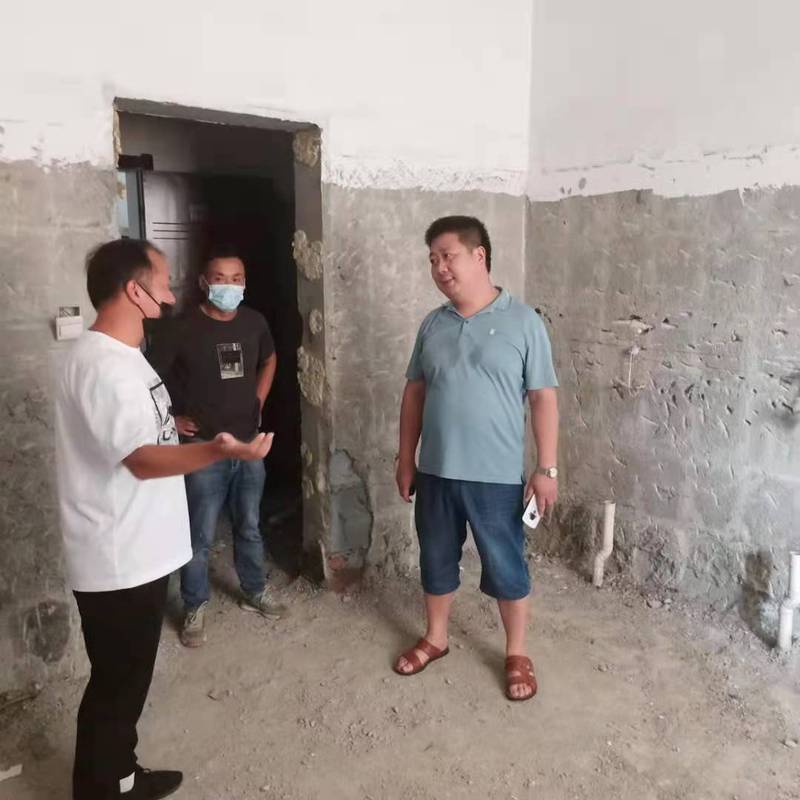 在行政楼施工现场,检查人员对照工期进度计划详细了解行政楼内外墙粉刷、走道吊顶、卫生间改造施工的进展情况,对工程例会上提出的问题和解决方案现场进行了勘查和研究。王立对墙面批腻子的平整度、是否空鼓、材料质量进行了检查,对卫生间的防水、瓷砖的贴铺、马桶及水龙头等的质量提出相应要求。
