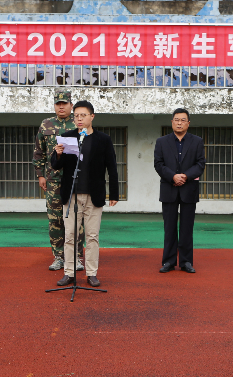 王辉阳作军训动员讲话,他首先对承担此次军训任务的参训教官表示崇高的敬意和衷心感谢,向2021级的新生表示热烈欢迎。王辉阳表示,军训是全面贯彻党的教育方针、积极推进素质教育的重要要求,是增强家国情怀、磨炼意志、砥砺品格、接受考验、快速成长的重要课程。王辉阳向全体新生提出三点希望:一要端正态度,明确军训目的,参训的同学要转变角色,积极投身军事训练;二要刻苦训练,学习军人作风,学习他们令行禁止,遵守纪律,雷厉风行的作风。三要持之以恒,巩固军训成果,希望同学们发扬不怕苦、不怕累的精神,坚决服从军训教官的指挥和调动,以高昂的热情,艰苦的努力,赢得军训的最后胜利。