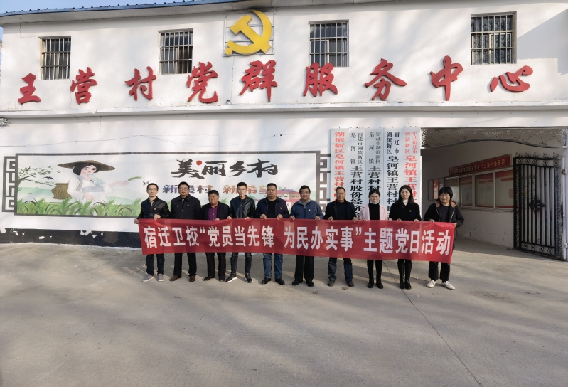 为充分发挥基层党组织战斗堡垒作用和党员先锋模范作用,着力推进“我为群众办实事”实践活动,近日,宿迁卫校到湖滨新区皂河镇王营村开展了“党员当先锋为民办实事”主题党日活动。
