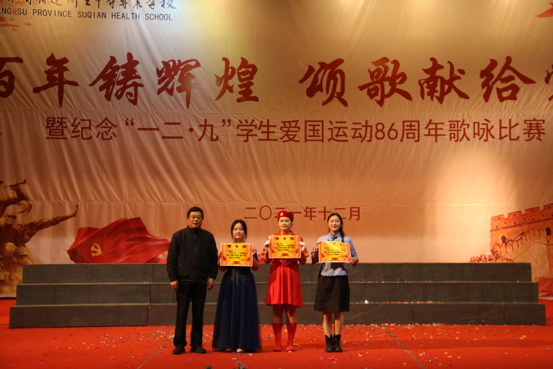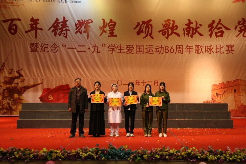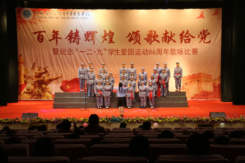 为纪念“一二·九”爱国运动八十六周年,传承爱国意识,弘扬民族精神,12月9日,宿迁卫校 “一二·九”学生爱国运动歌咏比赛在学术报告厅成功举办。校长王辉阳,党委书记张生玉,副校长王立、潘靖,各系部、处室负责同志,部分教师代表与400余名学生共同参与并观看了本次比赛。
