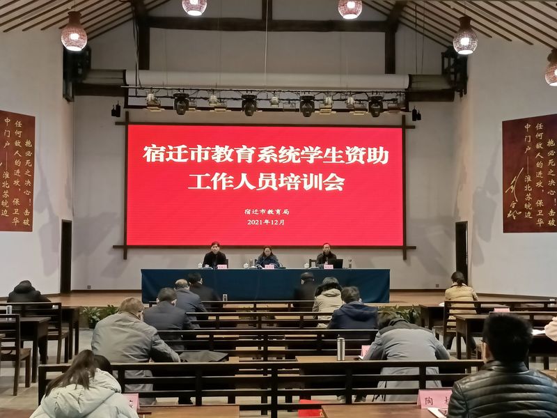 本次培训会时间为12月23-24日,宿迁市教育局结合正在开展的学习党史教育和党的十九届六中全会精神活动,对2021年学生资助工作亮点、存在问题在会上进行工作交流。会议还部署了2022年学生资助重点工作,对各学段资助政策进行了解读,对全国学生资助管理信息系统及省学生资助申报系统进行了培训。