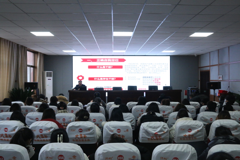 为进一步夯实立德树人根本任务,践行为党育人、为国育才的初心使命,巩固和强化学生干部综合素质及能力,充分发挥学生干部的示范引领作用,1月6日下午,校党委书记张生玉为学生干部做专题培训讲座。学工处、各系部负责同志,校、系学生会全体学生干部参加培训。培训会由学工处荣峰处长主持。