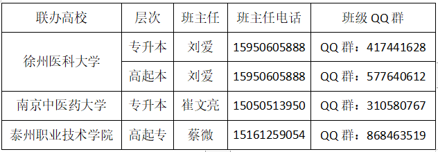 我校已收到徐州医科大学、南京中医药大学、泰州职业技术学院2022年成人高等教育宿迁卫校教学点新生名单,并通过邮寄录取通知书或短信方式通知学生。现将班主任联系电话及班级QQ群公布,请各位新生务必加入班级群并和班主任取得联系。后续报到和缴费等通知会由班主任通过该班级群发布,请大家谨防诈骗!