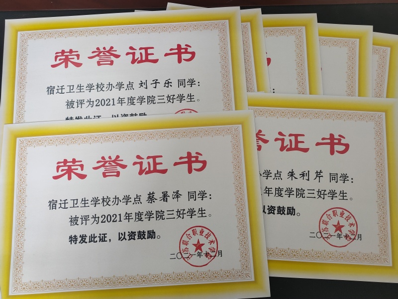 近日,江苏联合职业技术学院表彰了一批“三好学生、优秀学生干部和先进班集体”,宿迁卫校21名学生和1个班集体榜上有名。