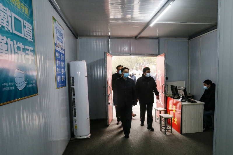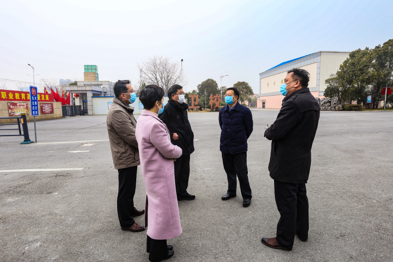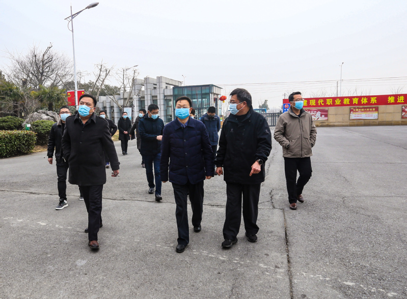 2月14日下午,副市长薛启书带领市教育局、市卫健委负责同志对我校疫情防控工作开展检查指导。校长、党委副书记王辉阳,党委书记、副校长张生玉和相关处室负责人陪同检查。