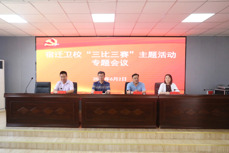 6月2日,宿迁卫校召开“三比三赛”主题活动专题会议。党委书记、校长张超,党委委员、副校长王立、潘靖及全体党员干部参加会议,会议由副校长张生玉主持。