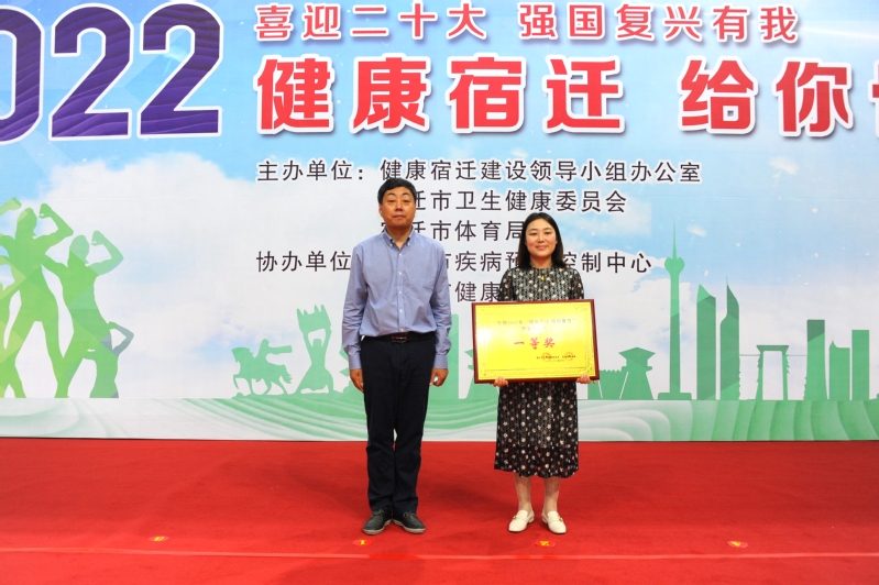 6月14日上午,由健康宿迁建设领导小组办公室、宿迁市卫生健康委员会、宿迁市体育局主办,宿迁市疾病预防控制中心、宿迁市健康教育所协办的2022年“健康宿迁 给你骨力”市卫健系统健骨操比赛在市奥体中心篮球馆举行,宿迁卫校代表队在十二支队伍中脱颖而出荣获一等奖。