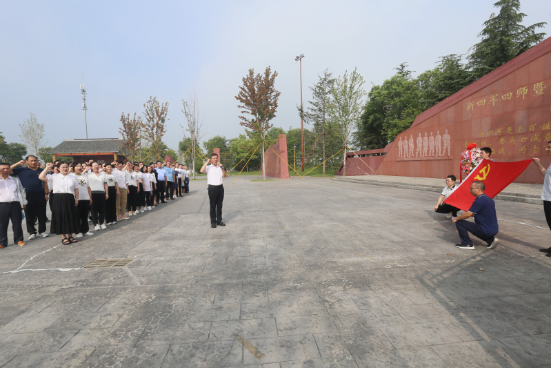 “我志愿加入中国共产党,拥护党的纲领……”全体党员面对鲜艳的党旗,庄重地举起右拳,在先烈们工作和战斗过的地方重温入党誓词。