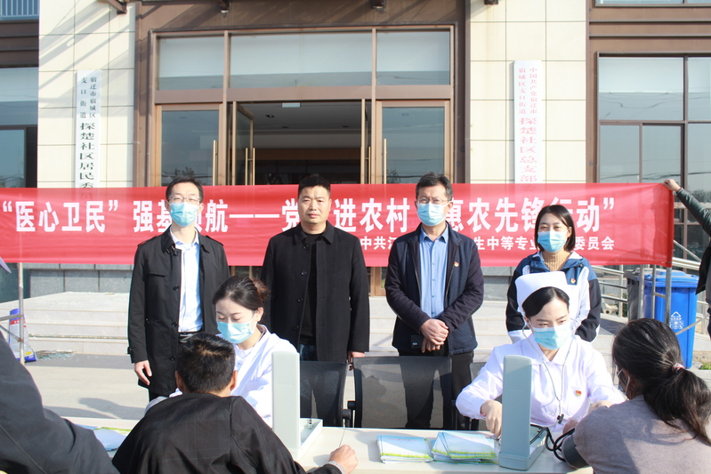 为贯彻落实市卫健委党委“医心卫民”强基领航“六大先锋行动”的有关要求,11月5日,宿迁卫校赴探楚居委会开展“医心卫民”强基领航—党员进农村“惠农先锋行动”。