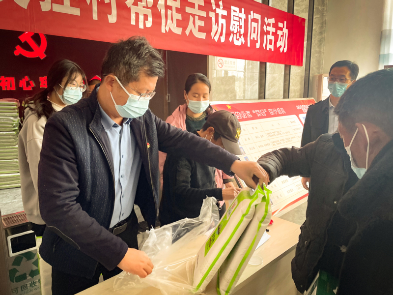 在慰问现场,张超带领干部职工给农户发放大米、牛奶、食用油等慰问品,认真倾听农户的心声,记录了解他们的家庭情况、收入来源以及需要解决的困难和问题,鼓励他们积极面对困难,保持坚定信心,努力发展家庭经济。