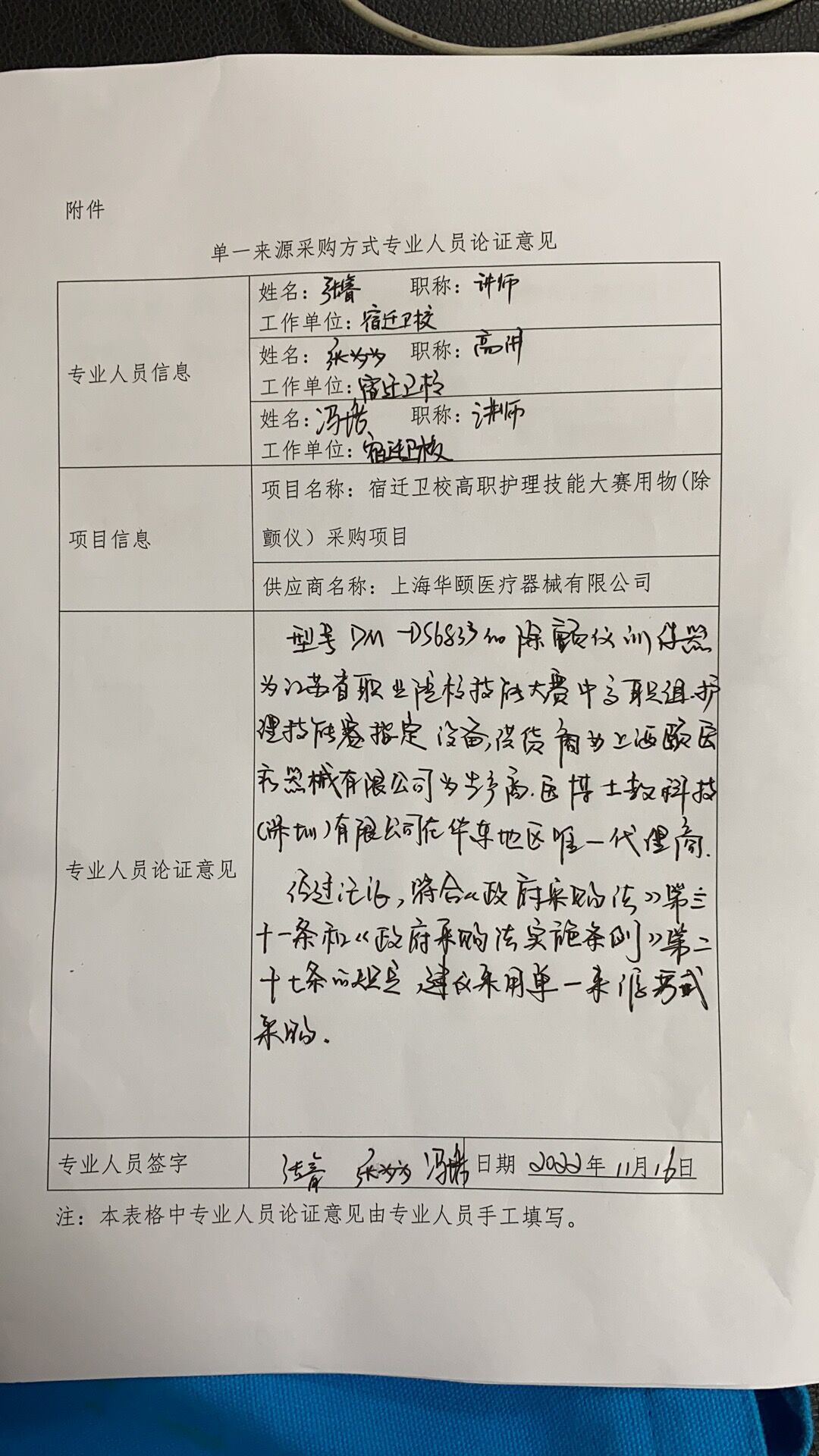(三)拟采购的货物的说明:宿迁卫校高职护理技能大赛用物(除颤仪)采购项目,为江苏省职业院校技能大赛中高职组护理技能赛指定设备,特申请单一来源采购。