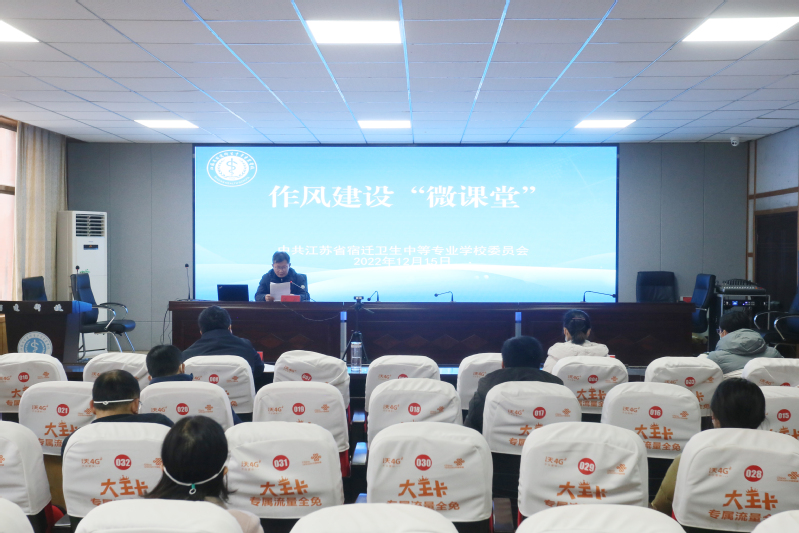 12月15日,宿迁卫校开展作风建设“微课堂”,学校党委书记、校长张超主讲《作风建设一以贯之深度关注——长期有效的铁规距、硬杠杠》专题内容,学校全体中层及以上干部参加学习。