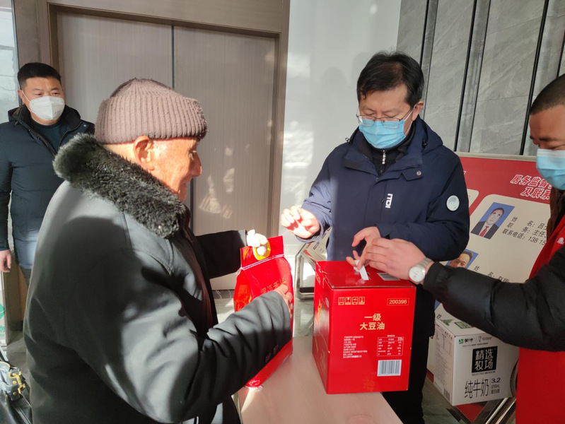 随后,张超带领干部职工给农户发放大米、牛奶等慰问品,同群众亲切交谈,热心询问他们的家庭经济状况和近期生产生活情况。党员干部们认真倾听帮扶对象的困难诉求和愿望,鼓励他们乐观生活,积极向上,克服困难,保持乐观健康心态。
