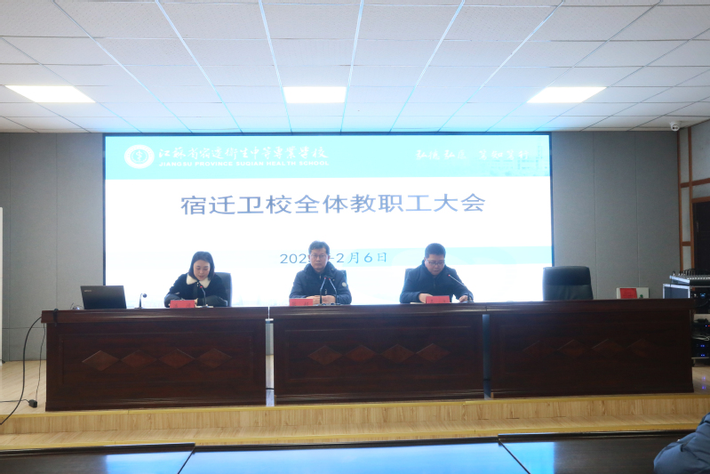 2月6日下午,宿迁卫校召开全体教职工会议,宿迁卫校党委书记、校长张超出席会议并讲话,副校长潘靖及全体教职工参加会议,会议由副校长王立主持。